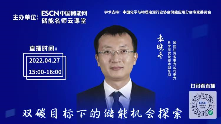 4月27日下午15:00-16:00,中国储能网非常荣幸地邀请到国网江苏省电力公司电力科学研究院技术副总监袁晓冬做客“ESCN储能名师云课堂”(在线直播),为大家分享《“双碳”目标下的储能机会探索》主题报告。欢迎业界同仁在线学习与交流。