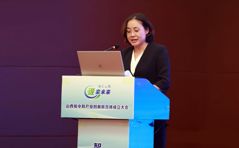 绿谷碳中和环保科技园总经理孙红霞介绍山西碳中和产业创新联合体筹备工作报告