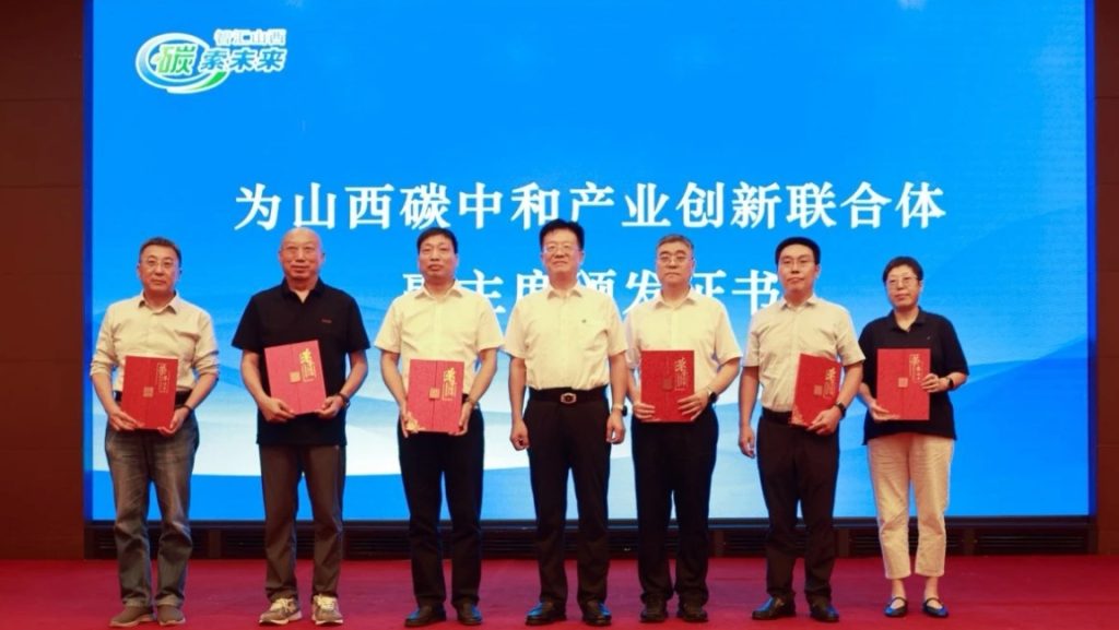 会上,由联合体主席王凤斌,副主席牛小平、孟新利、梁春豪、郝晓刚、谢力、赵学明以及山西省发展和改革委员会二级巡视员武东升共同为“山西碳中和产业创新联合体”揭牌,标志着山西碳中和产业创新联合体正式启航!
